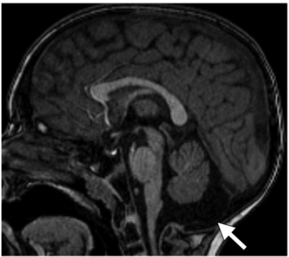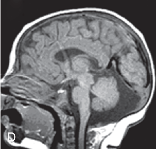 - an enlarged posterior fossa secondary to an enlarged cisterna magna (>10 mm on midsagittal images),
